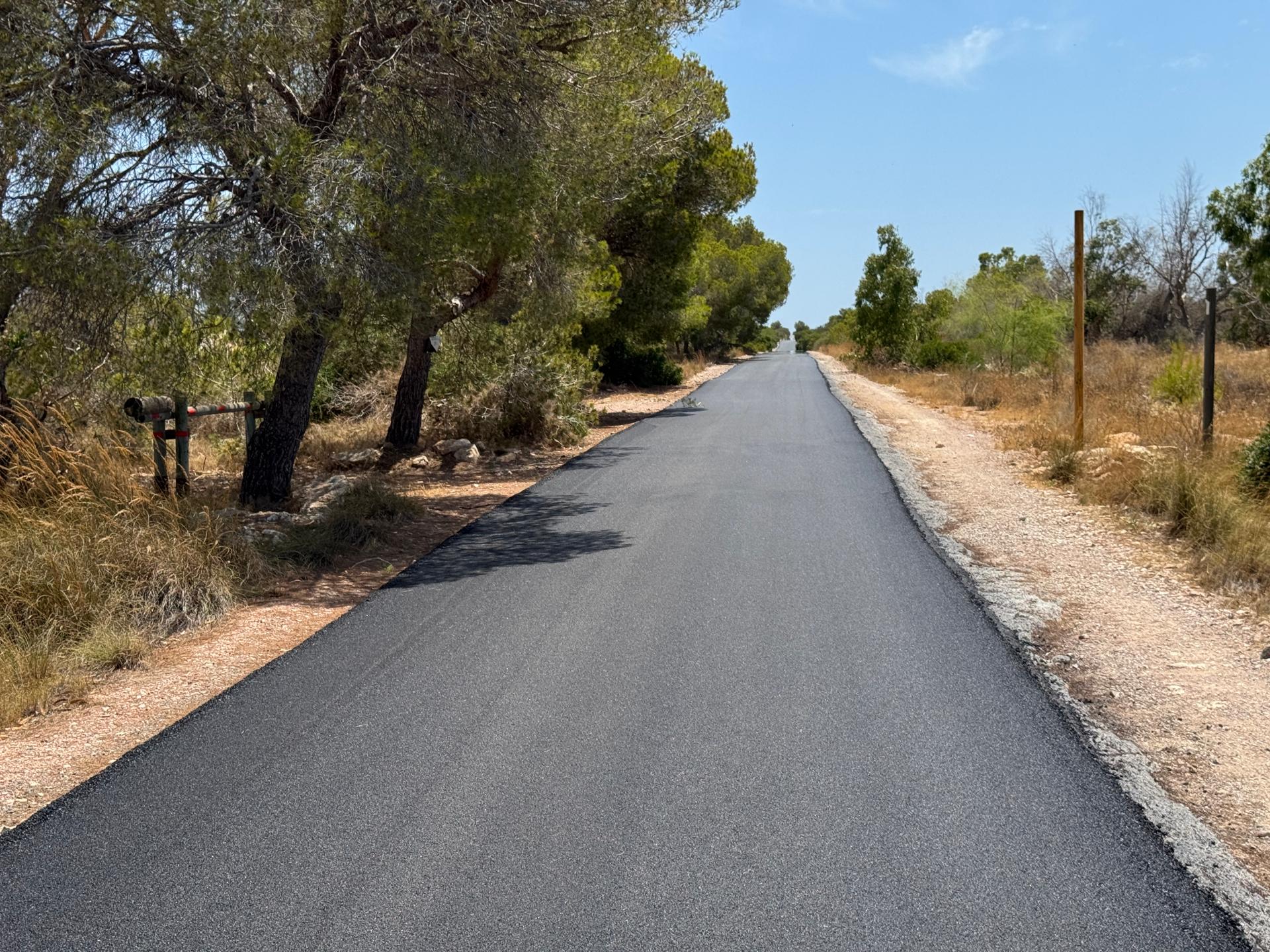 El Ayuntamiento de Santa Pola invierte 40.000 euros en la renovación de la capa de rodadura de un tramo de tres kilómetros entre la carretera general y la zona de aparcamiento junto a los barracones de la Guerra Civil.