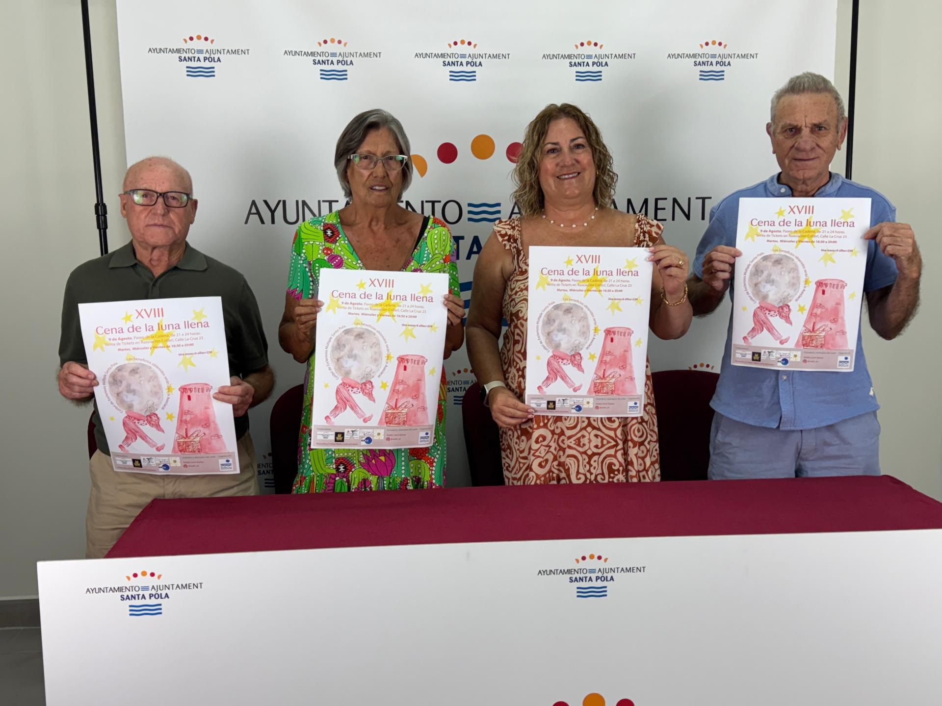 La concejal de Fiestas Nely Baile recordó que “la Cena de la Luna Llena es una cita emblemática del verano santapolero en la que vecinos y visitantes se reúnen bajo la luna llena para compartir una noche mágica junto al mar, además su causa solidaria es importante para que se siga celebrando año tras año”.